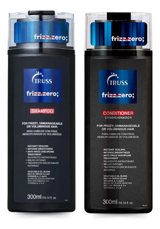O Kit Truss Frizz Zero é a combinação ideal para cabelos alinhados, sem frizz e com brilho intenso. Sua fórmula avançada limpa suavemente, hidrata na medida certa e controla o volume, deixando os fios mais disciplinados e macios. Benefícios: