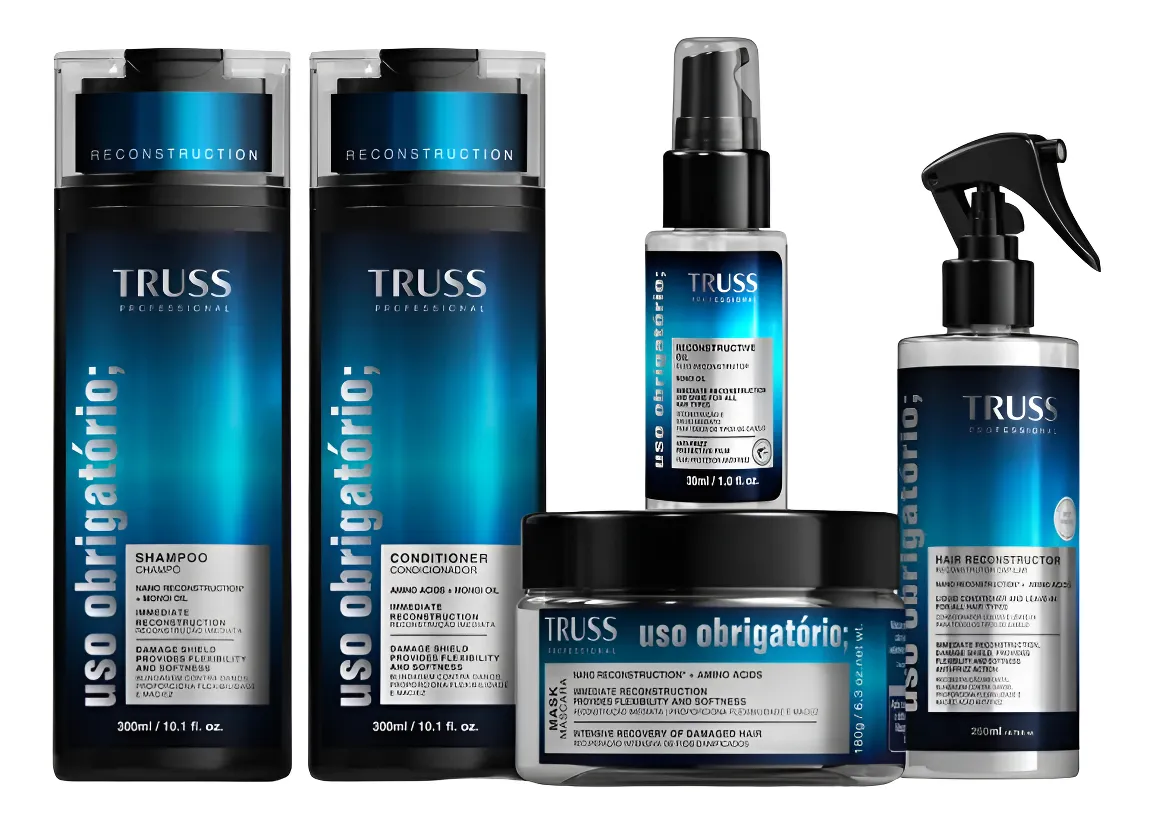Descubra o poder transformador do Kit Truss Uso Obrigatório, um tratamento profissional completo para cabelos de todos os tipos. Composto por cinco itens essenciais, este kit é a solução para quem busca alisamento, restauração, hidratação e controle do frizz. Sua fórmula dermatologicamente testada e hipoalergênica garante que mesmo os fios mais sensíveis recebam o carinho que merecem.
