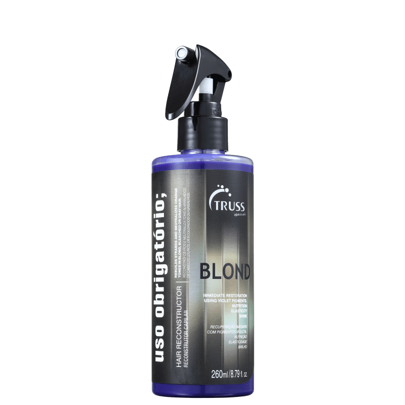 Borrife no comprimento e pontas, após o shampoo e antes do condicionador ou da Blond Mask TRUSS. Deixe agir e retire completamente o produto antes da secagem. *Não aplique no dia das luzes e para a primeira aplicação, deixe agir de 30 segundos a 1 minuto. Nas próximas, aumente o tempo se necessário.